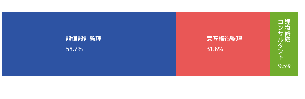 設備設計の実績割合が多く、意匠計画・構造に関する業務の引合いも定期的に行っています。